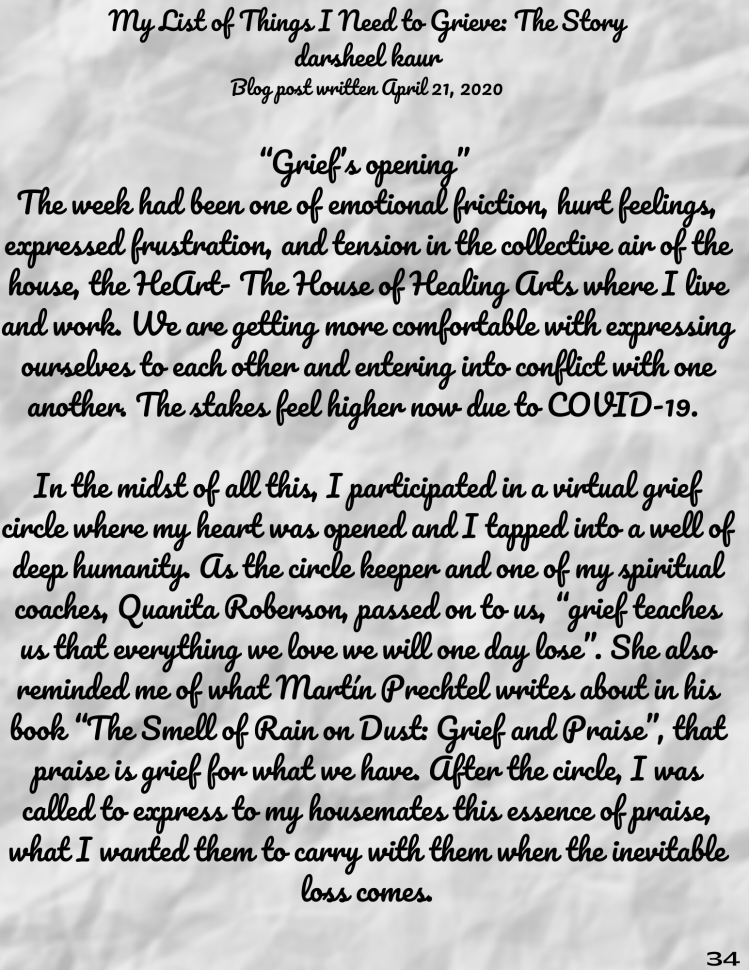 Image description: Black text in cursive font is presented in centered paragraphs. The background is white with many small gray shadows, like a crumpled piece of paper which has been flattened out. There is a page number ’34’ in black in the bottom right corner.