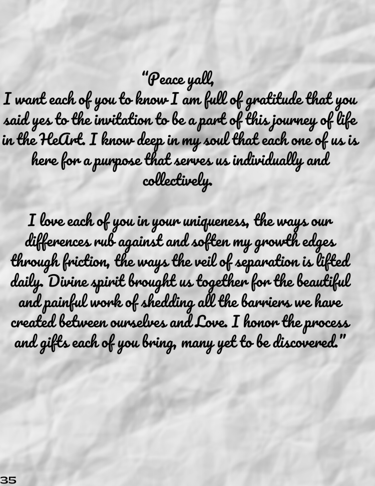 Image description: Black text in cursive font is presented in centered paragraphs. The background is white with many small gray shadows, like a crumpled piece of paper which has been flattened out. There is a page number ’35’ in black in the bottom left corner.